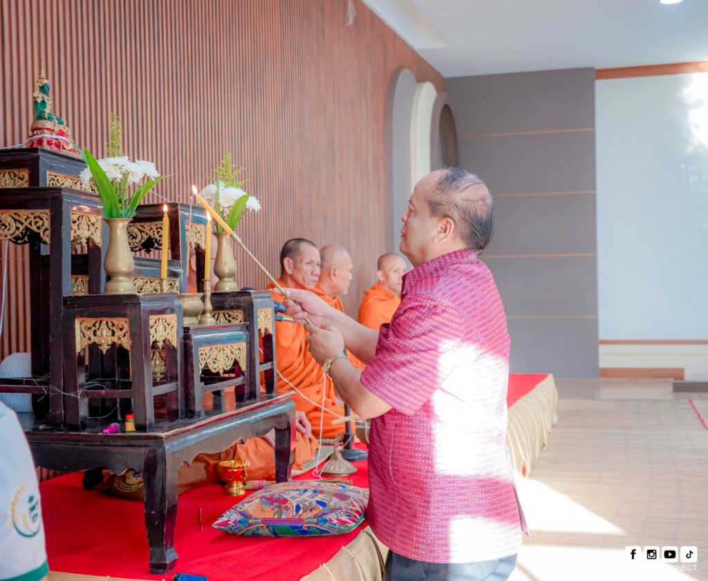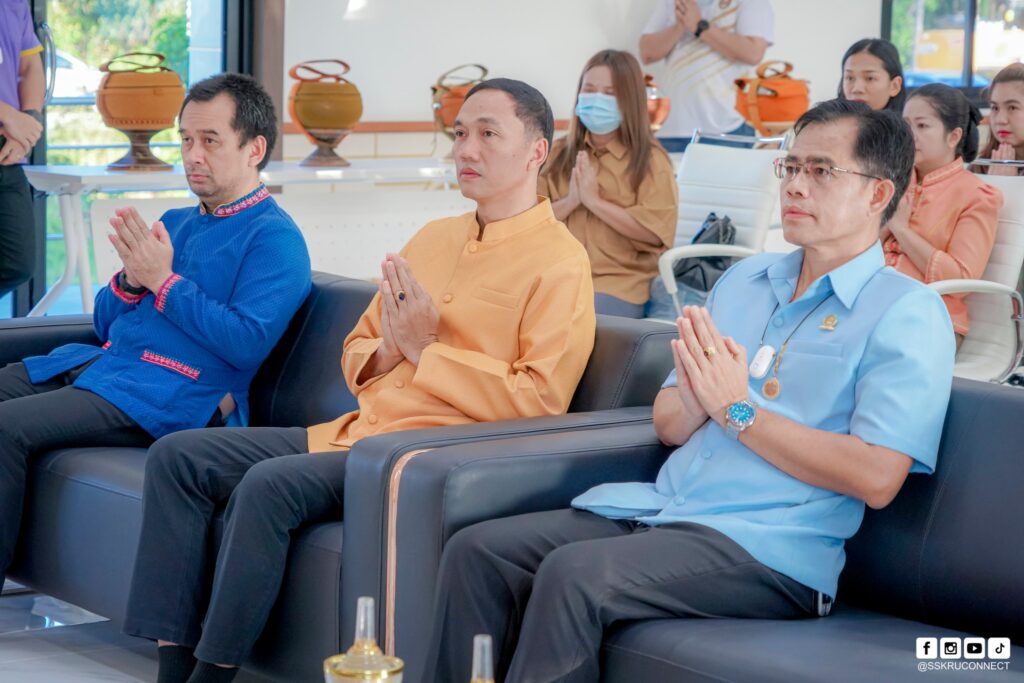 วันที่ 3 ตุลาคม 2568 เวลา 07.00 น . ณ ห้องประชุมชั้น 1 อาคารศูนย์การเรียนรู้เกษตรทฤษฎีใหม่ (โคกหนองนา) รองศาสตราจารย์ ดร. ประกาศิต อานุภาพแสนยากร อธิการบดีมหาวิทยาลัยราชภัฎศรีสะเกษ เป็นประธานในพิธีทำบุญตักบาตรแด่พระภิกษุสงฆ์ จำนวน 5 รูป และประกอบพิธีสงฆ์เจริญพระพุทธมนต์ถวายสังฆทานและจตุปัจจัยพร้อมถวายปิ่นโต โดยมีคณะผู้บริหาร อาจารย์ เจ้าหน้าที่และนักศึกษา คณะศิลปศาสตร์และวิทยาศาสตร์มหาวิทยาลัยราชภัฎศรีสะเกษ ร่วมทำบุญตักบาตร โดยพร้อมเพรียงกัน