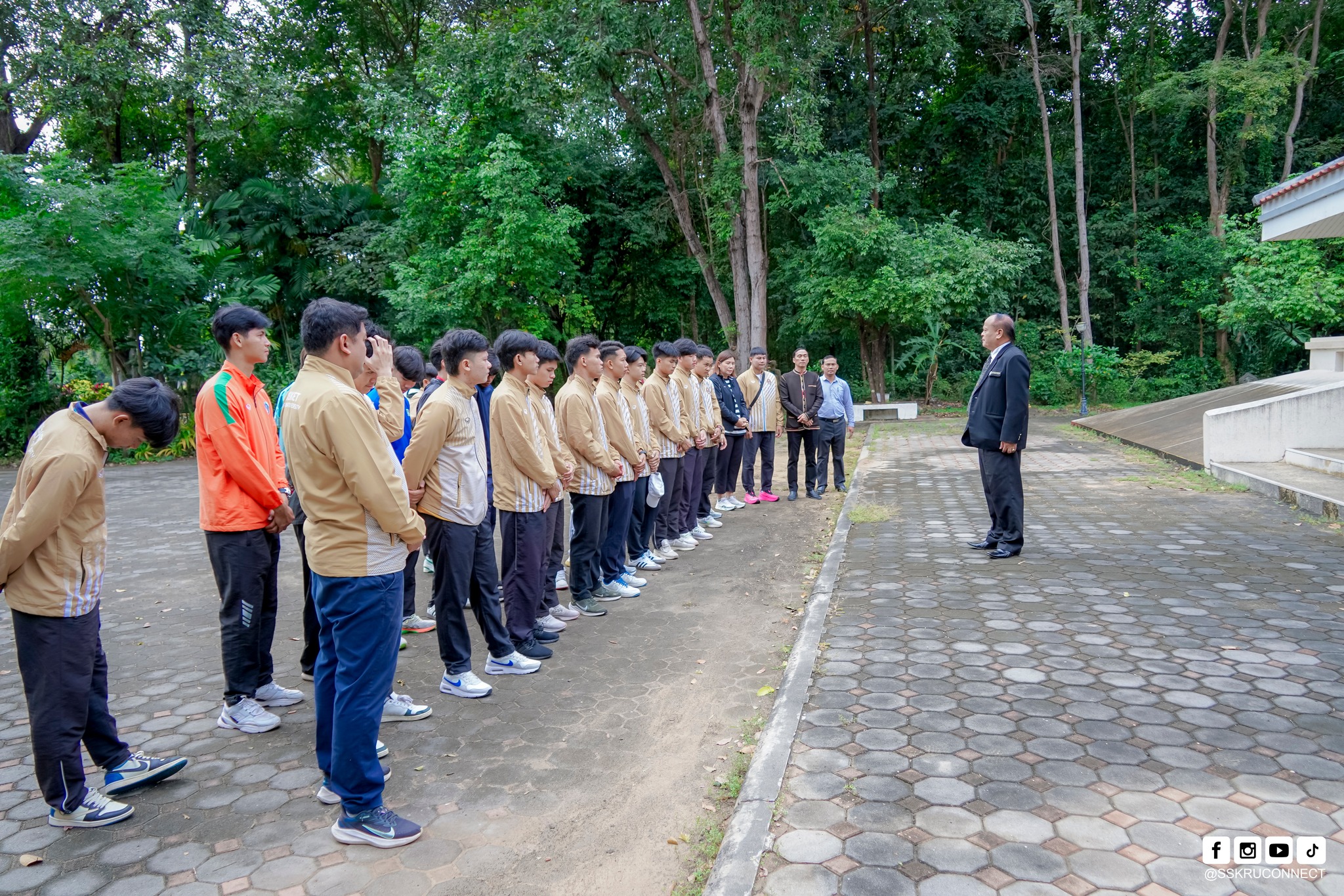 วันที่ 28 ตุลาคม 2568 เวลา 09.00 น. บริเวณศาลาประดิษฐานพระพุทธราชภัฏมุนีศรีสะเกษ รองศาสตราจารย์ ดร.ประกาศิต อานุภาพแสนยากร อธิการบดีมหาวิทยาลัยราชภัฏศรีสะเกษ ให้โอวาทตัวแทนนักศึกษา ประเภททีม ฟุตบอล เข้าร่วมการแข่งขันกีฬามหาวิทยาลัยแห่งประเทศไทย ครั้งที่ 51 “โพธิ์ล้อมตาลเกมส์” รอบคัดเลือกภาคตะวันออกเฉียงเหนือ