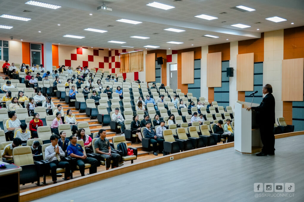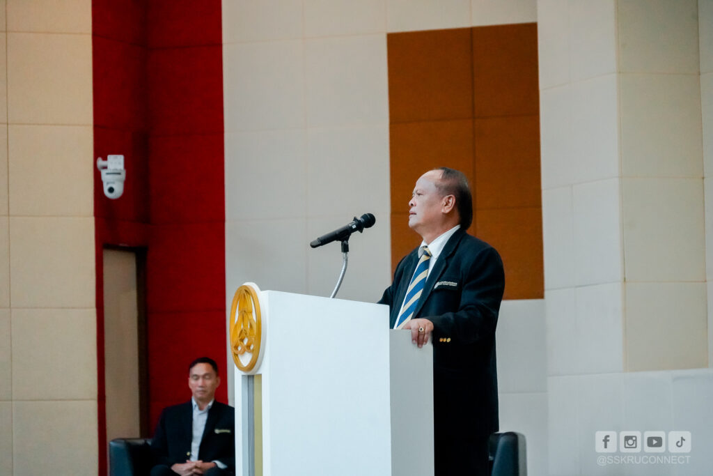 วันที่ 5 พฤศจิกายนส 2568 เวลา 13.30 น. ณ ห้องปีบทอง อาคารคณะพยาบาลศาตร์ รองศาสตราจารย์ ดร.ประกาศิต อานุภาพแสนยากร อธิการบดีมหาวิทยาลัยราชภัฏศรีสะเกษ พร้อมด้วย ผู้ช่วยศาสตราจารย์ ดร.เชี่ยวชาญ แสงทอง รองอธิการบดี ฝ่ายกิจการนักศึกษา นางเพ็ญพักตร์ สุมณฑา หัวหน้างานพัฒนานักศึกษาพร้อมบุคลากร พบผู้นำนักศึกษาของมหาวิทยาลัย เพื่อให้คำแนะนำ ข้อเสนอแนะ และแนะแนวทางในการบริหารจัดการการดำเนินงานด้านการจัดกิจกรรมนักศึกษา และการเรียนของตนเองเพื่อให้เกิดความสมดุลในการใช้ชีวิตในการเรียนและแจ้งกิจกรรมต่างๆ แก่ผู้นำนักศึกษา หัวหน้าหมู่เรียน เพื่อนำไปถ่ายทอดให้นักศึกษาให้ทราบต่อไป