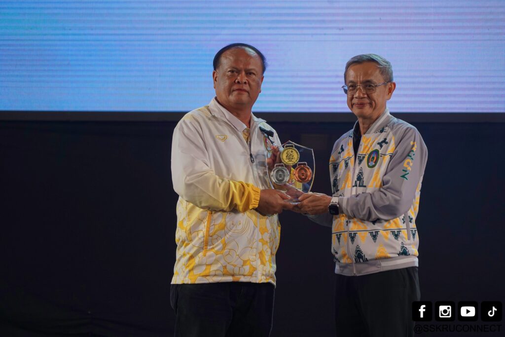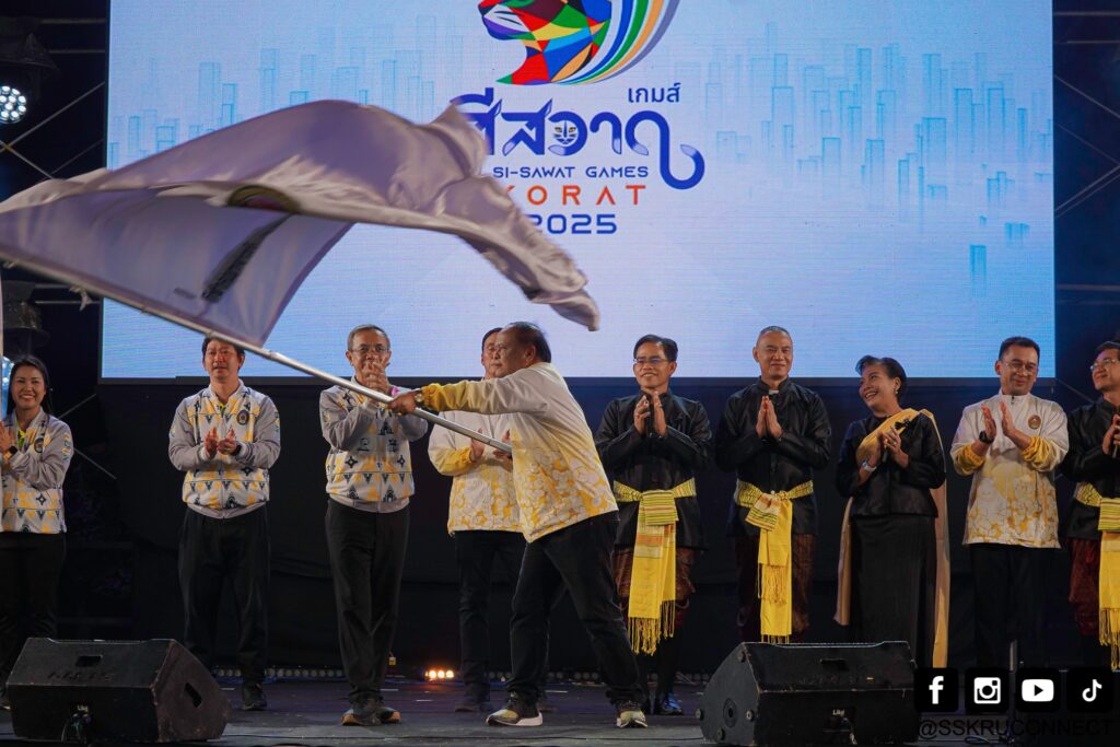 มหาวิทยาลัยราชภัฎศรีสะเกษ นำโดย รองศาสตราจารย์ ดร.ประกาศิต อานุภาพแสนยากร อธิการบดีมหาวิทยาลัยราชภัฎศรีสะเกษ นำทัพนักกีฬาบุคลากร ร่วมการแข่งขันกีฬา บุคลากรมหาวิทยาลัยราชภัฏกลุ่มภาคตะวันออกเฉียงเหนือ ครั้งที่ 54 สีสวาดเกมส์ “กีฬาปัญญาชน คนราชภัฏ “ระหว่างวันที่ 25-26 พฤศจิกายน 2568 ณ มหาวิทยาลัยราชภัฏนครราชสีมา ระหว่างนี้ทางท่านอธิการบดีและคณะผู้บริหาร ได้มีการรับมอบธงการเป็นเจ้าภาพครั้งต่อไป ในการจัดการแข่งขันกีฬานักศึกษากลุ่มภาคตะวันออกเฉียงเหนือ ครั้งที่ 46 และกีฬาบุคลากรกลุ่มภาคตะวันออกเฉียงเหนือ ครั้งที่ 55 นครลำดวนเกม ประจำปี 2569