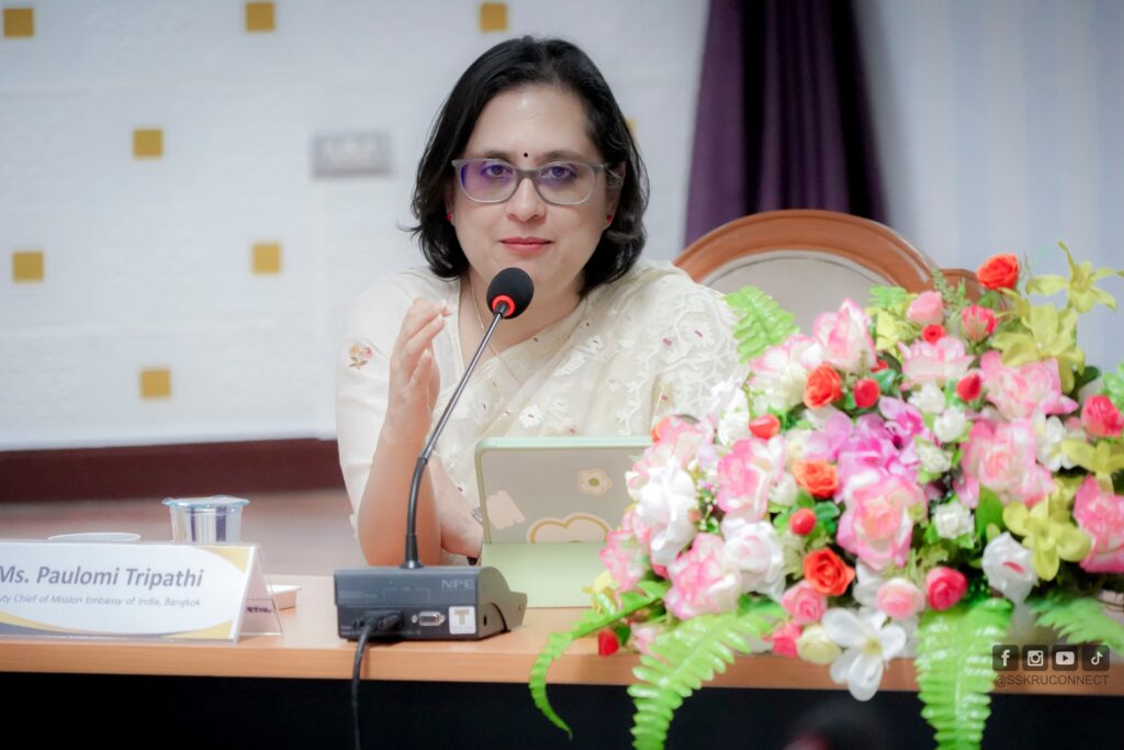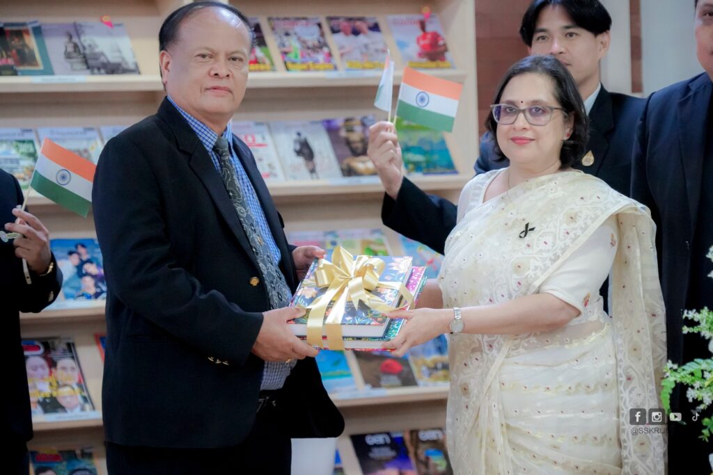 วันที่ 12 ธันวาคม 2568 ณ สำนักวิทบริการและเทคโนโลยีสารสนเทศ มหาวิทยาลัยราชภัฏศรีสะเกษ โดยมีรองศาสตราจารย์ ดร.ประกาศิต อานุภาพแสนยากร อธิการบดีมหาวิทยาลัยราชภัฎศรีสะเกษ พร้อมด้วย ผู้ช่วยศาสตราจารย์ ดร.สหัสา พลนิล รองอธิการบดีฝ่ายวิชาการ ผู้ช่วยศาสตราจารย์ ดร. อาสนะ เชิดชู ผู้ช่วยอธิการบดีกำกับดูแลสถาบันภาษาศิลปะและวัฒนธรรม อาจารย์กวินวัฒน์ หิรัญบูรณะ ผู้อำนวยการสถาบันภาษา ศิลปะและวัฒนธรรม อาจารย์ ดร.กริชบดินทร์ ผิวหอม รองผู้อำนวยการสำนักวิทยบริการและเทคโนโลยีสารสนเทศ พร้อมด้วยบุคลากรของสถาบันภาษา ศิลปะและวัฒนธรรมและบุคลากรของสำนักวิทยบริการและเทคโนโลยีสารสนเทศ เข้าร่วมให้การต้อนรับ อุปทูตปอโลมี ตริปาฐี (อุปทูต สถานเอกอัครราชทูตอินเดียประจำประเทศไทย) และคณะในครั้งนี้