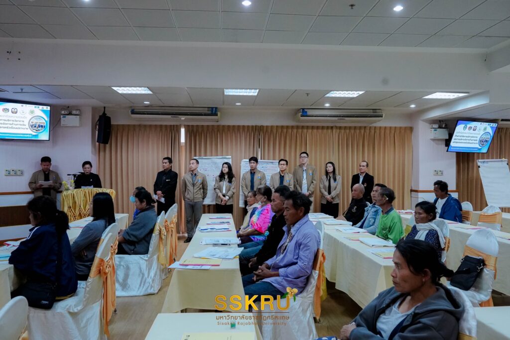 วันพุธที่ 14 มกราคม 2569 เวลา 9.00 น. รองศาสตราจารย์ ดร.ประกาศิต อานุภาพแสนยากร อธิการบดีมหาวิทยาลัยราชภัฏศรีสะเกษ เป็นประธานในพิธีเปิดโครงการอบรม อบรม “พัฒนาความรู้ความเข้าใจในการบริหารจัดการการเงิน” โดยรองศาสตราจารย์ ดร.เอมอร แสนภูวา รองอธิการบดีมหาวิทยาลัยราชภัฏเป็นผู้กล่าวรายงาน มหาวิทยาลัยราชภัฎศรีสะเกษ ได้รับทุนสนับสนุนการวิจัยจากหน่วยบริหารและจัดการทุนด้านการพัฒนาระดับพื้นที่ (บพท.) ตั้งแต่ในปี 2563 เป็นต้นมา อย่างต่อเนื่อง เพื่อดำเนินการวิจัยแก้ไขปัญหาความยากจน จังหวัดศรีสะเกษ ประกอบด้วย กระบวนการสอบทานขอมูลคนจนที่แมนยำ การวิเคราะห์ขอมูล การพัฒนาระบบข้อมูลที่แม่นยำ จัดกลุ่มคนจน ออกเป็น 4 ระดับ ระดับที่ 1 ส่งต่อความช่วยเหลือเร่งด่วน ให้กับหน่วยงานที่เกี่ยวข้องระดับ 2 และ 3 กรณีไม่เร่งด่วน การวิจัยมีโครงการนวัดกรรมแก้จน เพื่อยกระดับรายได้กลุ่มเป้าหมายให้มีรายได้ ไม่น้อยกว่า 20% และ จัดทำรายงานข้อเสนอแนะเพื่อนำเข้าสู่แผนการพัฒนาให้กับจังหวัด โดยในประมาณ 2565 มหาวิทยาลัย ได้ยกระดับการค้นหาสอบทานข้อมูล การจัดเก็บข้อมูล และการใช้งานระบบฐานข้อมูลจังหวัดศรีสะเกษด้วยการจัดทำบันทึกข้อตกลงความร่วมมือ กับสำนักงานพัฒนาชุมชนจังหวัดศรีสะเกษ ในปีงบประมาณ 2568 การดำเนินการวิจัย การสอบทานข้อมูลครอบคลุมพื้นที่ 22 อำเภอ ยกระดับการ พัฒนาระบบข้อมูลให้ตอบโจทย์หน่วยงานเพื่อให้เกิดการใช้งานให้มากขึ้น ขยายการใช้ระบข้อมูลให้ครอบคลุมทั้ง จังหวัด และพัฒนานักจัดการข้อมูล 22 อำเภอ ในการอบรม “พัฒนาความรู้ความเข้าใจในการบริหารจัดการการเงิน” ครั้งนี้ มีวัตถุประสงค์เพื่อ ช่วยเสริมสร้างความรู้ ความเข้าใจ และทักษะทางการเงิน อันจะนำไปสู่การลดปัญหาความยากจนและภาระ หนี้สิน เสริมสร้างความเข้มแข็งทางเศรษฐกิจของครัวเรือน และพัฒนาคุณภาพชีวิตของประชาชนในจังหวัดศรีสะเกษและพื้นที่ใกล้เคียงอย่างยั่งยืน โดยมีกลุ่มเป้าหมาย คือ ครัวเรือนที่ได้รับการสอบทานค้นหา ร่วมอบรมทักษะอาชีพ ในพื้นที่อำเภอเมืองศรีสะเกษ จำนวน 567 ครัวเรือน และคัดเลือกเข้าร่วมอบรม จำนวน 65 ครัวเรือน และในการอบรมในครั้งนี้ ได้รับเกียรติจากวิทยากร ผู้ทรงคุณวุฒิ ประกอบด้วย