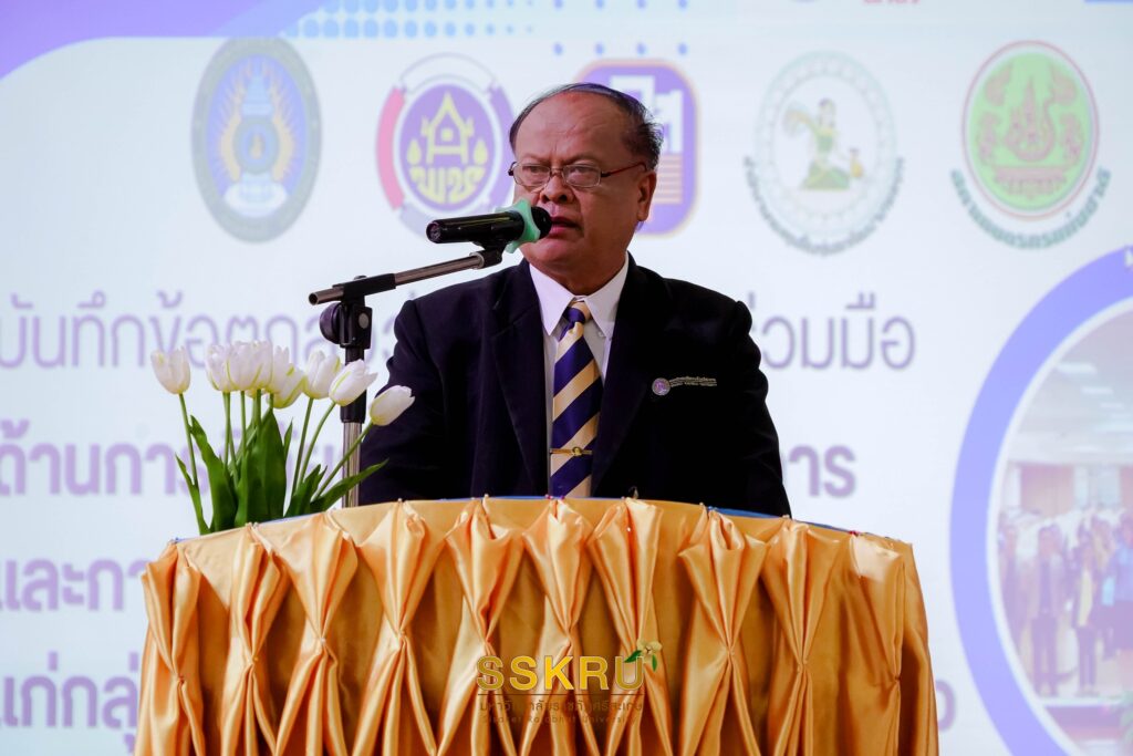 และในวันนี้มหาวิทยาลัยราชภัฏศรีสะเกษได้จัดพิธีบันทึกข้อตกลงว่าด้วยความร่วมมือด้านการวิจัย การบริการวิชาการและการบริหารจัดการด้านการเงินแก่กลุ่มเกษตรกรครัวเรือนเปราะบาง กับหน่วยงานที่เกี่ยวข้อง โดยมีหัวหน้าส่วนราชการ และประชาชนในเครือข่ายเป้าหมายร่วมเป็นสักขีพยาน ณ ห้องประชุมสุขวิช รังสิตพล โรงแรมศรีพฤทธาลัยราชภัฏสัมมนาคาร (นครลำควนเพลลส) มหาวิทยาลัยราชภัฏศรีสะเกษ