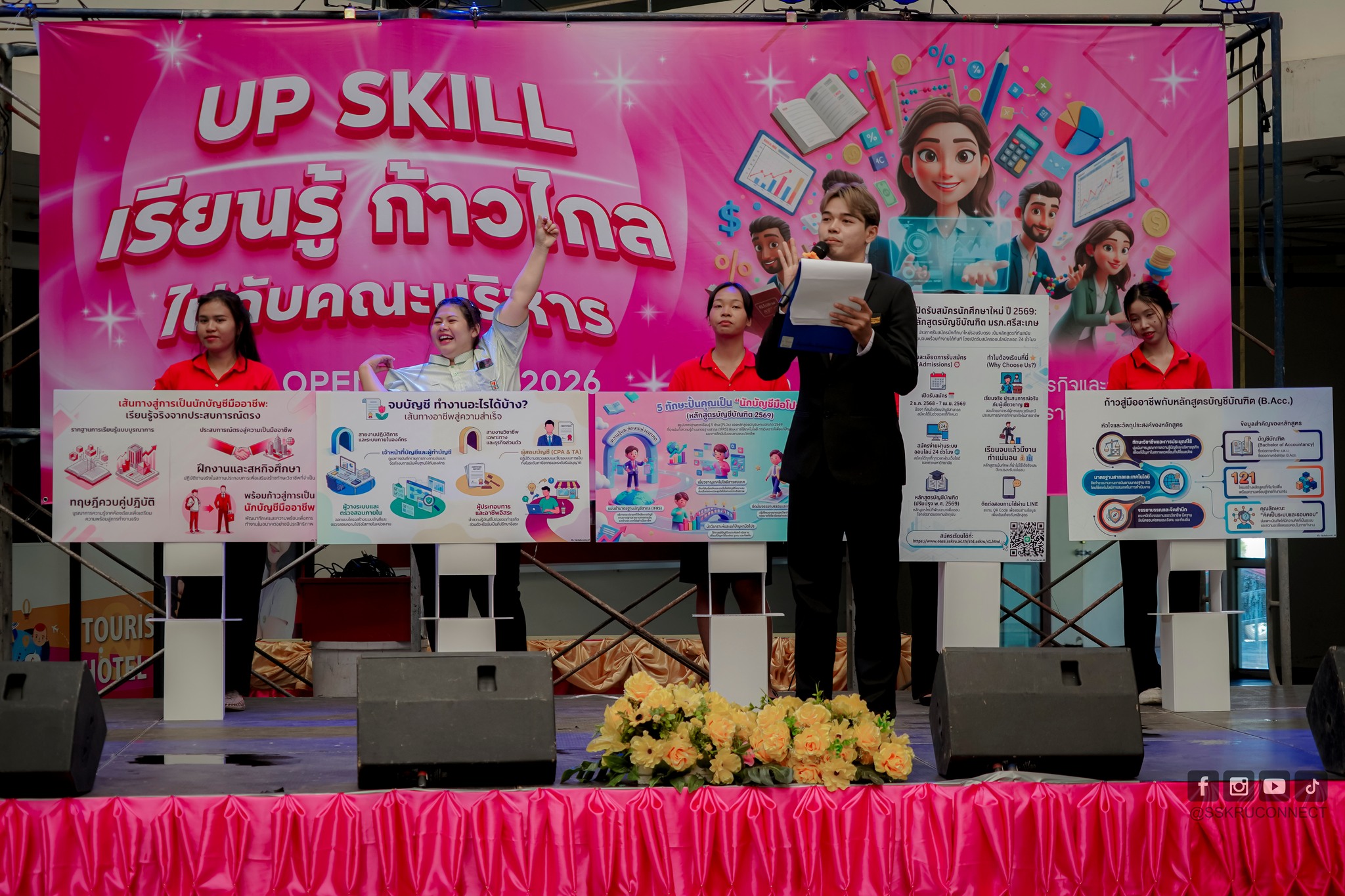 วันพุธที่ 18 กุมภาพันธ์ 2569 ณ คณะบริหารธุรกิจและการบัญชี มหาวิทยาลัยราชภัฏศรีสะเกษ รองศาสตราจารย์ ดร. ประกาศิต อานุภาพแสนยากร อธิการบดีมหาวิทยาลัยราชภัฎศรีสะเกษ เป็นประธานในพิธีเปิดโครงการเปิดบ้านบริหารธุรกิจและบัญชี (เรียนรู้ก้าวไกลกับคณะบริหาร) โดยมีรองอธิการบดี ผู้ช่วยอธิการบดี คณบดี ผู้อำนวยการสำนัก ผู้อำนวยการสถาบัน คณาจารย์ และนักศึกษาทุกท่าน เข้าร่วมพิธีเปิดโครงการในครั้งนี้ โดยมี อาจารย์ ดร.ชูเกียรติ พงศ์พนาพิพัฒน์ คณบดีคณะบริหารธุรกิจและการบัญชี ในนามตัวแทนผู้จัดโครงการกล่าวรายงานและวัตถุประสงค์โครงการ เพื่อเป็นการแนะแนวการศึกษาต่อของนักเรียน และนักศึกษา อีกทั้งเป็นการประชาสัมพันธ์ให้คณะบริหารธุรกิจเป็นที่รู้จักอย่างกว้างขวาง เป็นโครงการที่โชว์ศักยภาพของคณาจารย์ในคณะ ศักยภาพในการจัดการเรียน การสอนของแต่ละสาขา ซึ่งเป็นประโยชน์ต่อคณะ ต่อคณาจารย์ ซึ่งจะช่วย พัฒนาองค์ความรู้ และช่วยให้เกิดประสิทธิภาพการทำงาน และมีมาตรฐาน มากยิ่งขึ้น