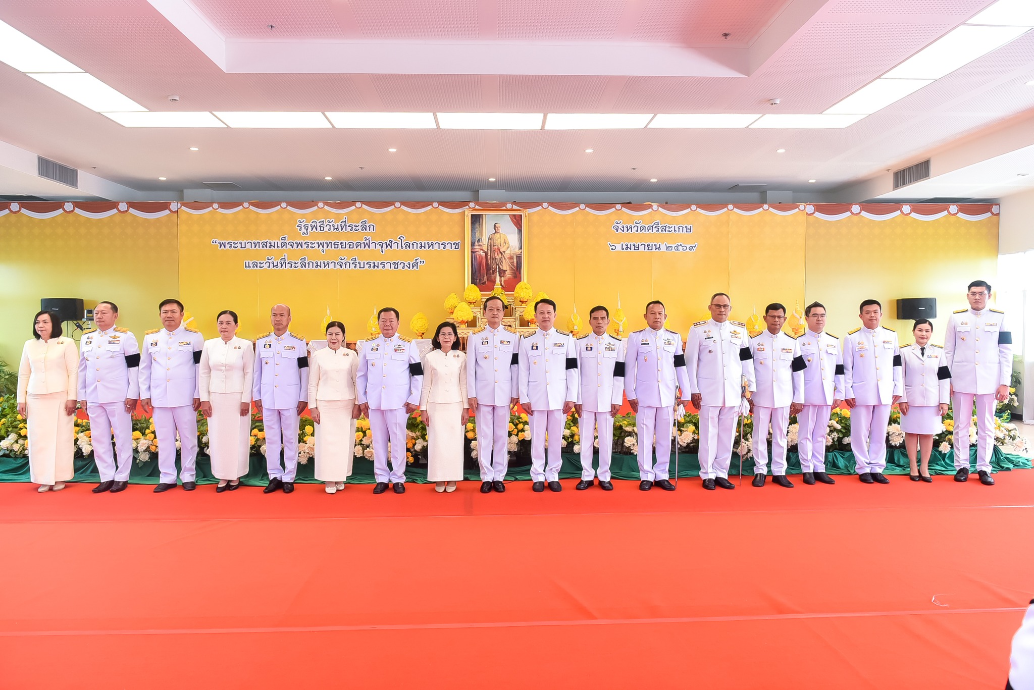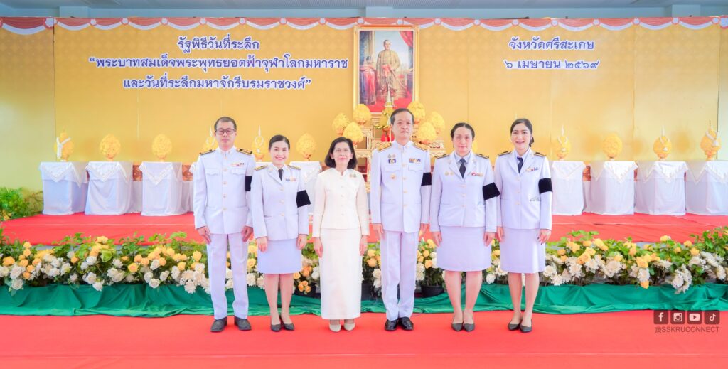 วันที่ 6 เมษายน 2569 รองศาสตราจารย์ ดร.ประกาศิต อานุภาพแสนยากร อธิการบดีมหาวิทยาลัยราชภัฏศรีสะเกษ มอบหมายให้ คณะบริหารธุรกิจและการบัญชี โดย ผศ.ปาริฉัตร พงษ์คละ รองคณบดีคณะบริหารธุรกิจและการบัญชี นำบุคลากรเข้าร่วมในพิธีเนื่องในวันพระบาทสมเด็จพระพุทธยอดฟ้าจุฬาโลกมหาราช และวันที่ระลึกมหาจักรีบรมราชวงศ์ โดยมีนายอนุรัตน์ ธรรมประจำจิต ผู้ว่าราชการจังหวัดศรีสะเกษเป็นประธานประกอบพิธีถวายราชสักการะและถวายราชสดุดีพระบาทสมเด็จพระพุทธยอดฟ้าจุฬาโลกมหาราช และวันที่ระลึกมหาจักรีบรมราชวงศ์ ประจำปี 2569 เบื้องหน้าพระบรมสาทิสลักษณ์ของสมเด็จพระพุทธยอดฟ้าจุฬาโลกมหาราช เพื่อน้อมรำลึกถึงพระมหากรุณาธิคุณและแสดงความกตัญญูกตเวที แด่สมเด็จพระมหากษัตริยาธิราชเจ้า ในพระบรมราชจักรีวงศ์ทุกพระองค์ ที่ทรงทำนุบำรุงบ้านเมืองให้เจริญรุ่งเรือง สร้างความมั่นคงและความเป็นปึกแผ่นให้แก่ราชอาณาจักรไทยจนถึงปัจจุบัน โดยมีข้าราชการตุลาการ อัยการ ข้าราชการพลเรือน ทหาร ตำรวจ ตลอดองกรค์ภาคเอกชน และ ประชาชนทุกหมู่เหล่าของจังหวัดศรีสะเกษเข้าร่วมพิธีอย่างพร้อมเพรียง